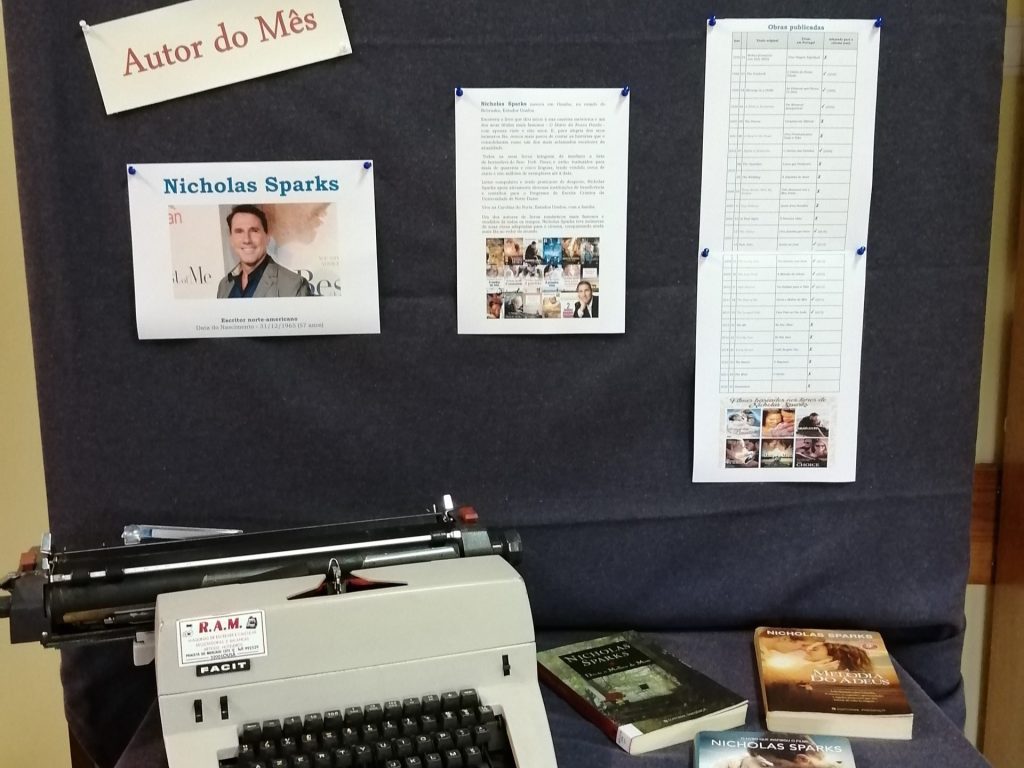 Para homenagear Nicholas Sparks, que nasceu a 31 de dezembro de 1965, em Obama, está a decorrer, durante o mês de dezembro, na Biblioteca Escolar do Agrupamento, uma exposição sobre a sua vida e obra.