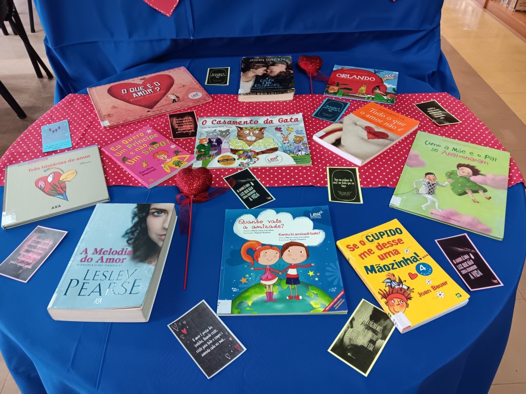 Para comemorar o “Dia dos Namorados”, em alguns países chamado “Dia de São Valentim”, está a decorrer uma exposição, na Biblioteca do Agrupamento, com várias sugestões de leitura, tendo como objetivo promover hábitos de leitura.